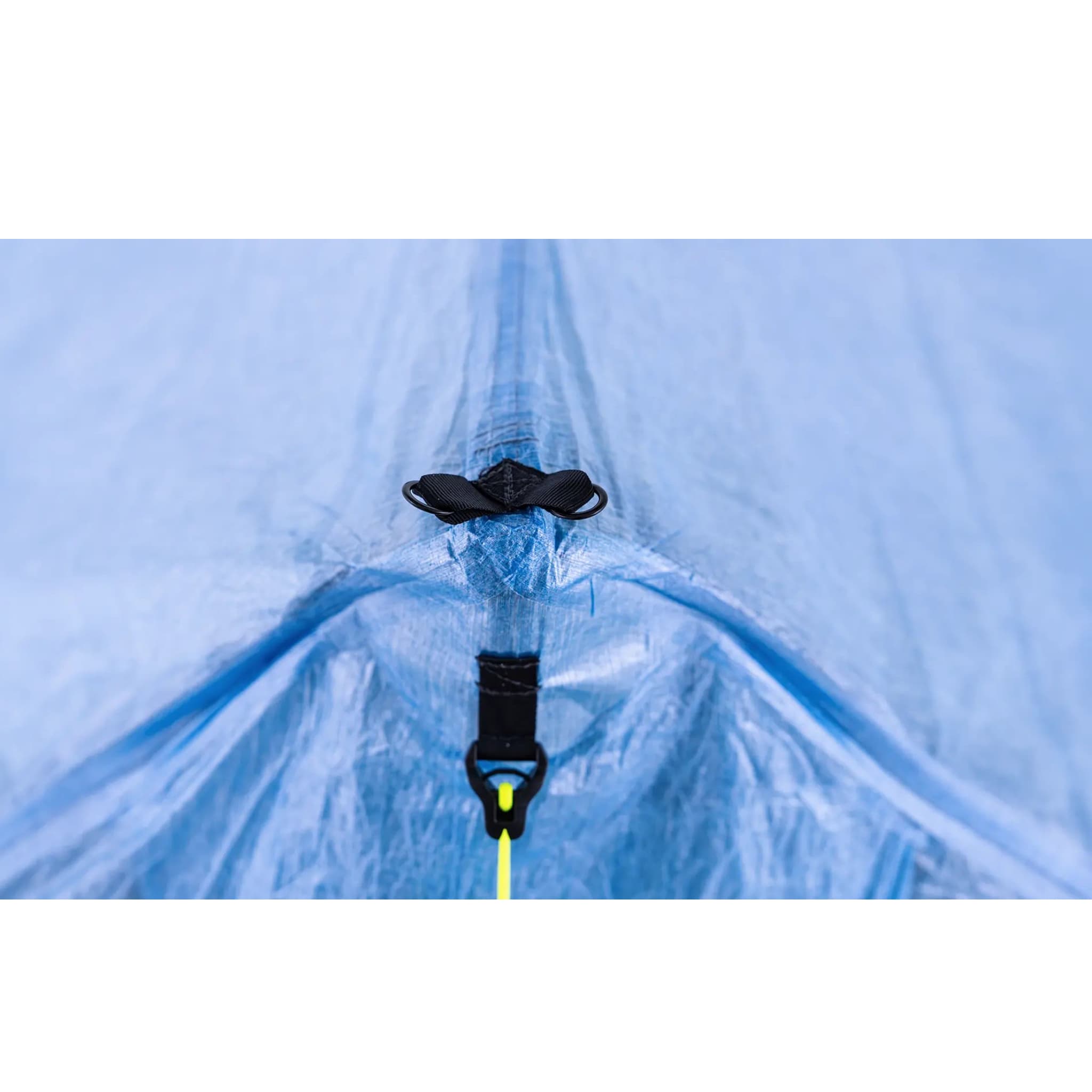 • Alle unsere Zelte halten dem Wind ziemlich gut stand. Das Material kann hohe Windlasten aushalten. Solange Ihre Heringe im Boden bleiben (verwenden Sie Steine, falls vorhanden), bleibt Ihr Zelt stehen. Dyneema® Composite Fabric ist kein besonders lautes Material, aber fast jedes Zelt macht im Wind ein wenig Lärm. Ohrstöpsel sind keine schlechte Idee für windige Nächte.