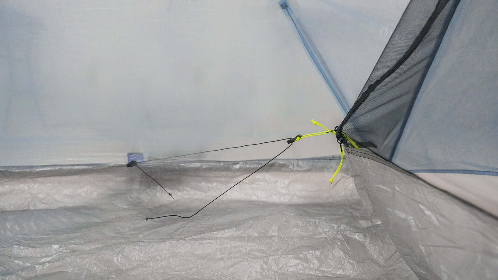 - Die gewölbte Form schafft steile Winkel am Kopf- und Fußende des Zeltes, was zu einer Menge nutzbaren Raums führt. Es ist ein Palast für zwei Wanderer mit Ausrüstung, oder bequem für drei Wanderer mit standardbreiten Unterlagen. Selbst die größten Wanderer haben genügend Freiraum für Kopf und Fuß, um nicht an den steilen Wänden zu stoßen.