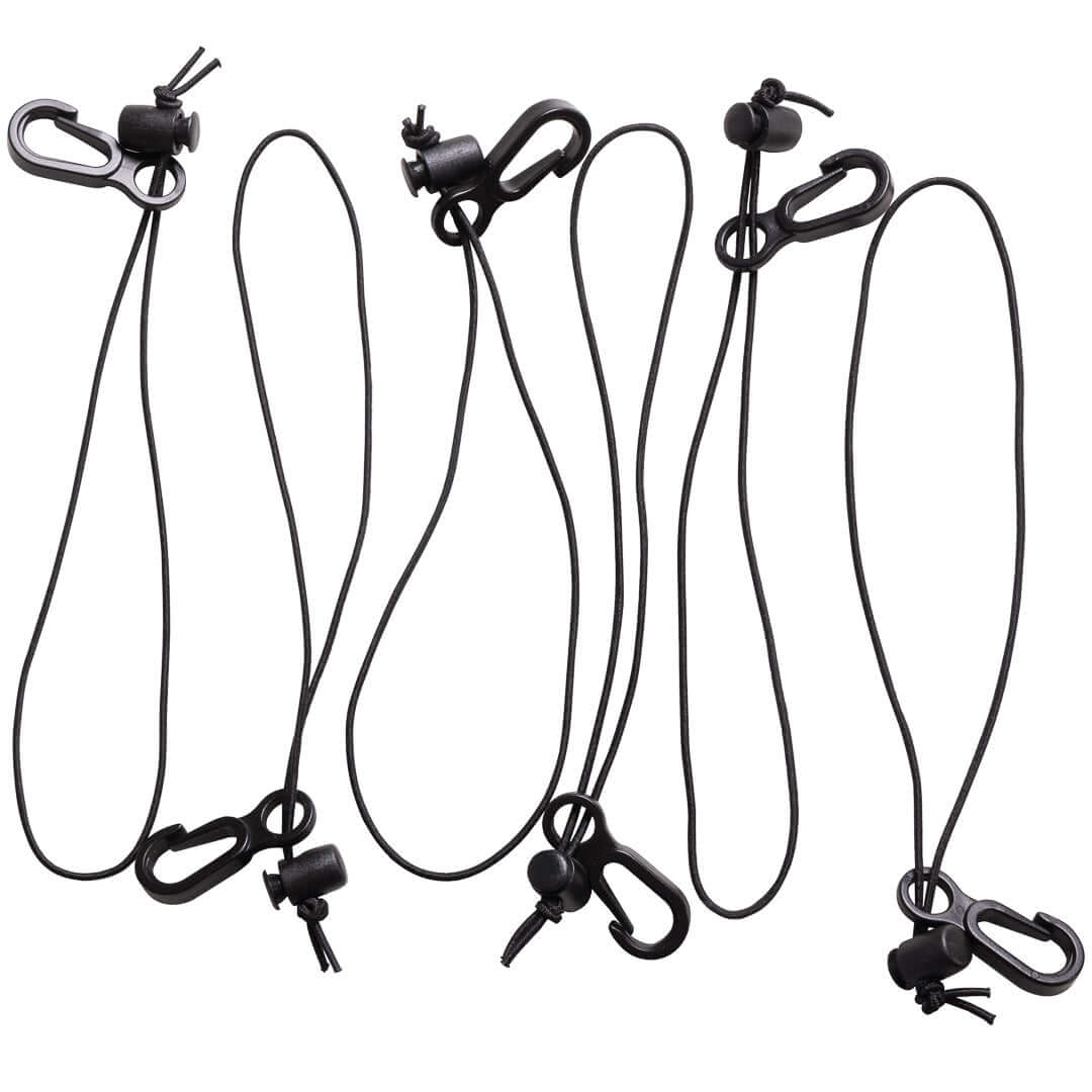 Verhindern Sie, dass Ihr Zeltboden weggeweht oder verrutscht, indem Sie ihn an Ihrem Tarp befestigen. Mit diesem Set können Sie unsere Wannenböden an unserem Hexamid Pocket Tarp oder an jedem anderen Tarp befestigen. Dieses Set enthält 6 elastische Schlaufen, jede mit eigenem Fäustelhaken und Kordelverschluss.