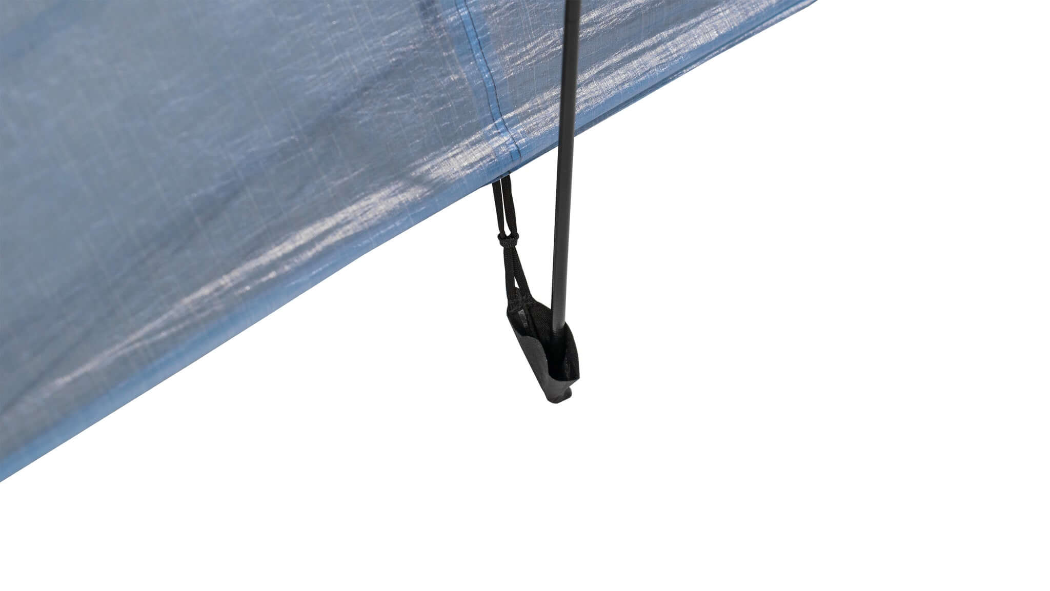 - Der Boden ist mit integrierten Trekkingstangenklappen ausgestattet, die es Ihnen ermöglichen, den Boden mit den Spitzen Ihrer Trekkingstangen oder mit 122cm-Zeltstangen zu fixieren. Dadurch wird verhindert, dass der Boden herumfliegt, und der Türreißverschluss kann mit einer Hand bedient werden.