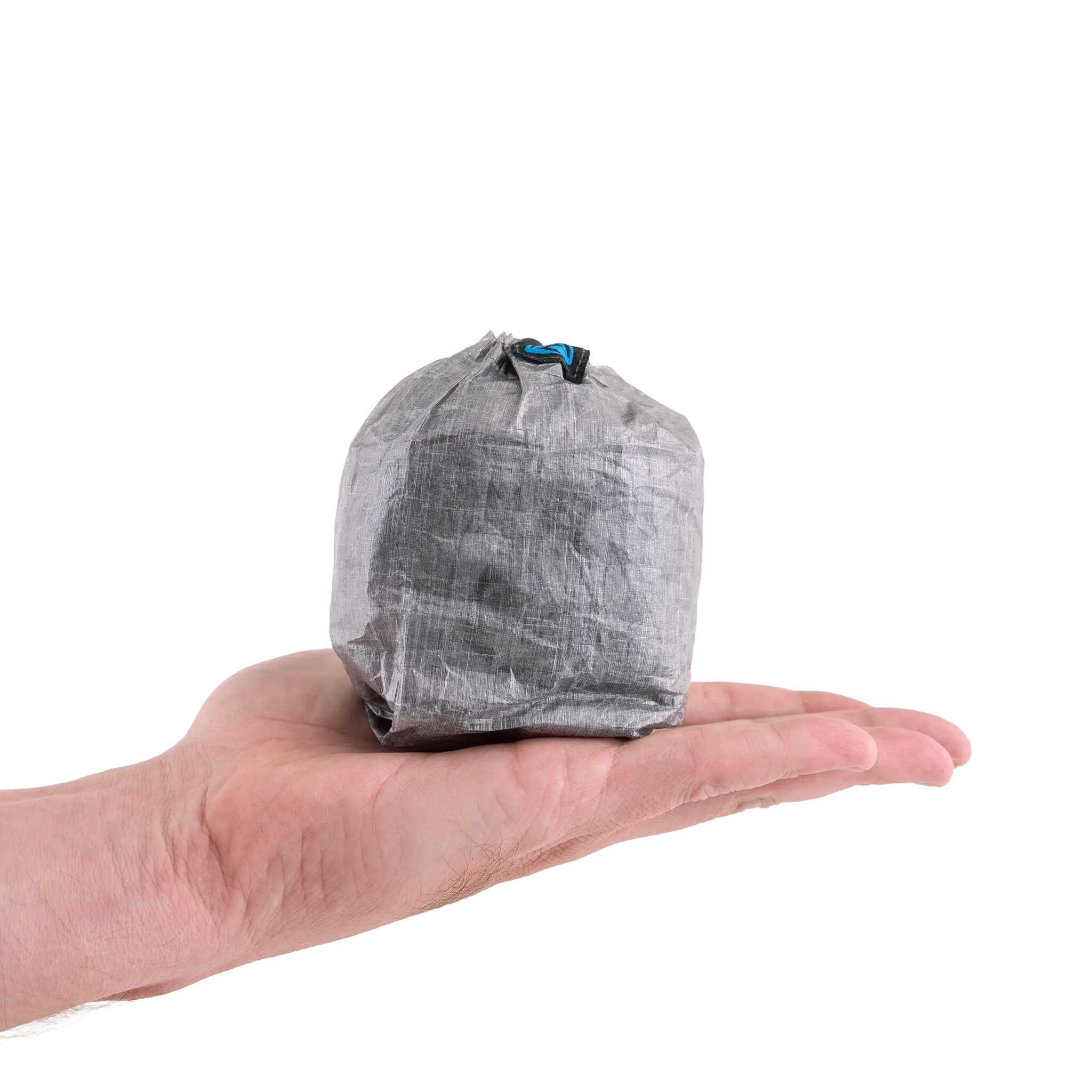 Hergestellt aus schwarzem 34 g/m² Dyneema® Composite Fabric. Im Vergleich dazu sind unsere regulären Stuff Sacks aus dünnerem 18,7 g/m²