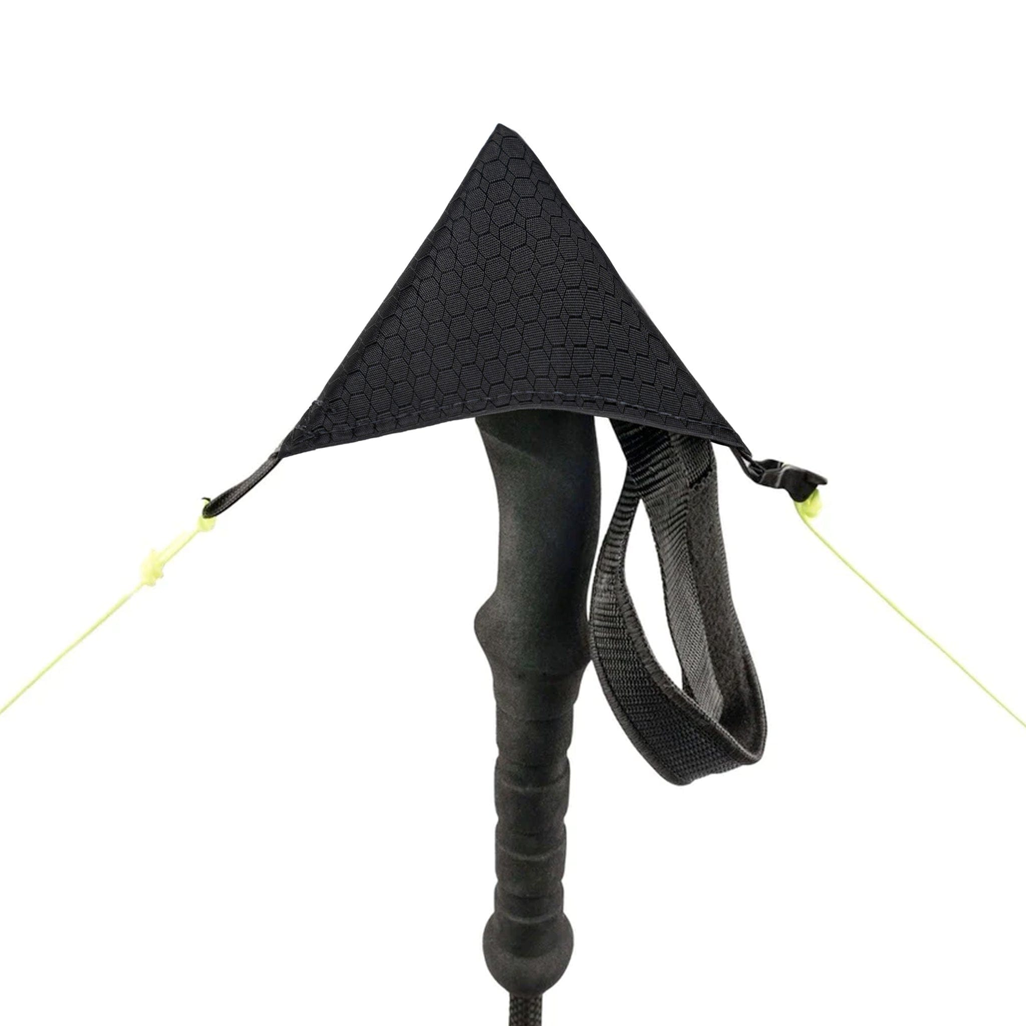 Brauchst du eine Erhöhung? Mit diesem Stoffbecher kannst du den Kopf oder das Fußende deines Unterschlupfs leicht anheben, um mehr Platz zu schaffen. Du kannst einen Trekkingstock mit dem Griff nach oben (aus dem Boden heraus), eine Zeltstange oder einen Stock verwenden. Die Schale fängt den Stangengriff oder die Spitze der Zeltstange sicher und mühelos auf.